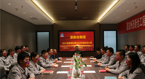 时光荏苒,岁月更迭。充满希望与汗水的2021在不舍中谢幕,崭新的2022年缓缓拉开了序幕,总结过往,展望新岁。2月18日,圣新合集团2021年度总结会暨2022年复工动员大会在新疆乌鲁木齐集团总部连云港大厦会议室隆重举行。圣新合集团董事长邢飛、集团总经理梁杰、集团技术总监陈亮及来自昌吉公司、喀什分公司、云南子公司、山东大区的高管团队、中层骨干及先进个人、优秀新人代表欢聚一堂,共襄盛举。