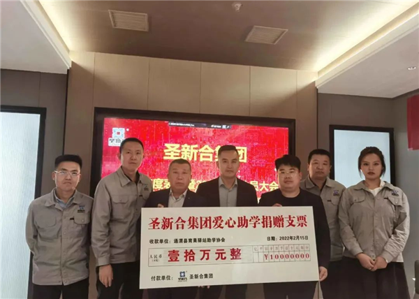 为回馈社会,圣新合集团已坚持7年进行捐资助学,本年度继续向育果驿站捐赠爱心助学款10万元。将慈善公益纳入公司企业文化并将此举传承下去。